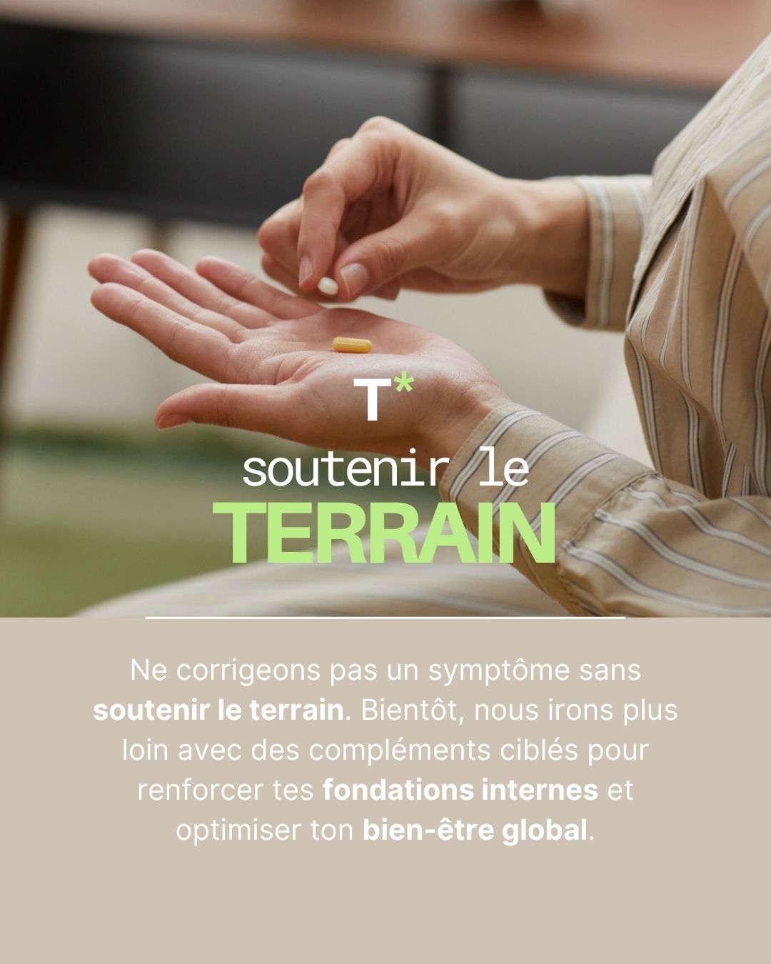 Ne corrigeons pas un symptôme sans soutenir le terrain. Bientôt, nous irons plus loin avec des compléments ciblés pour renforcer tes fondations internes et optimiser ton bien-être global.